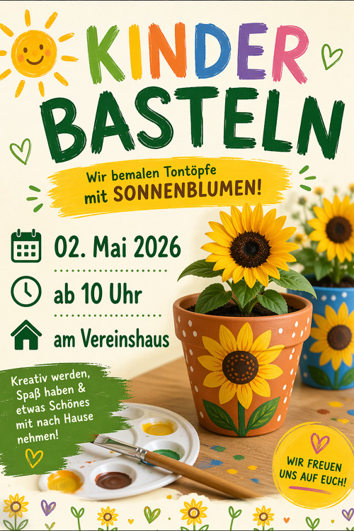 Dort könnt ihr Tontöpfe bemalen – zum Beispiel mit wunderschönen Sonnenblumen 🌻 oder mit allem, was euch einfällt. Ob Punkte, Muster, Tiere oder Fantasiefiguren – eurer Kreativität sind keine Grenzen gesetzt! 🎨🖌️